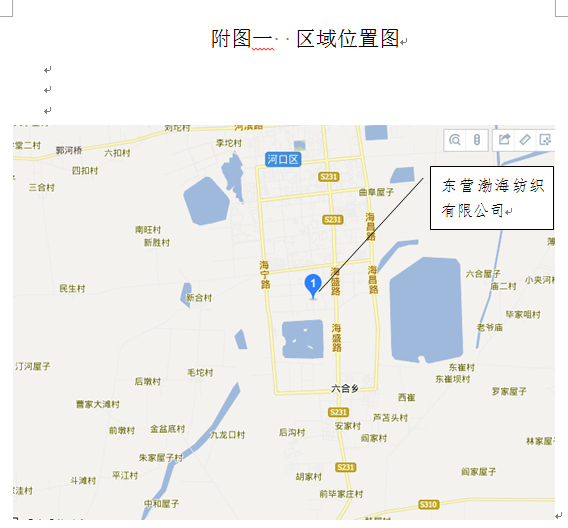 東營(yíng)渤海紡織有限公司位于東營(yíng)市河口區(qū)海河路以西、陽(yáng)河路以北,占地面積100畝。廠區(qū)所在地南面為陽(yáng)河路,距離為20m,廠區(qū)西面為東營(yíng)市布萊特石油裝備有限公司、東營(yíng)市三鎮(zhèn)服飾有限公司,距離大約15m;東面為海河路,距離大約為20m,海河路以東為金色河口(集團(tuán))新型材料有限責(zé)任公司、預(yù)制砂漿廠、東營(yíng)建友新型材料有限公司、匯昶飼料廠和東營(yíng)市廣和化工有限公司),距離為80m;北面為金河路,距離大約為20m,金河路以北為東營(yíng)市大中南實(shí)業(yè)有限公司,距離大約為120m。 |