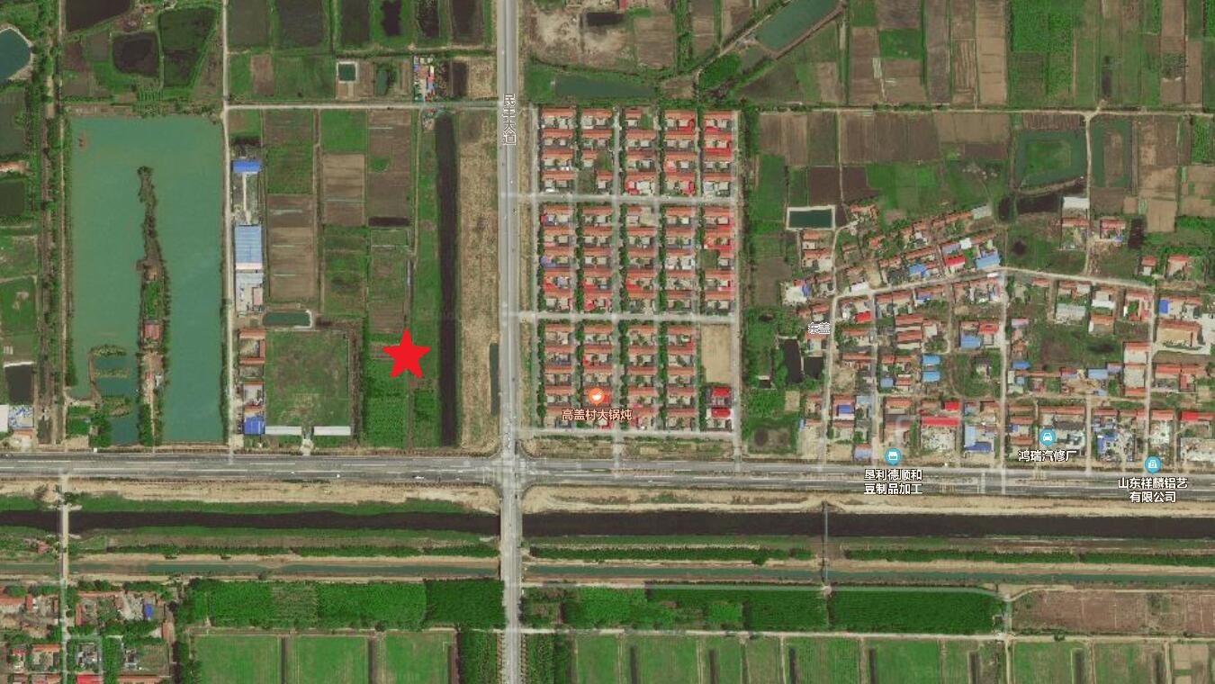 該項目距離東側(cè)民豐路路邊46m,該加油站位于東營市墾利區(qū)德州路與民豐路交叉口西北側(cè)。東側(cè)為民豐路,用地邊界距路邊46m,路東距用地邊界約100m處為高蓋村(人口約800人),其村內(nèi)幼兒園距站區(qū)邊界約720m。南側(cè)為德州路,用地邊界距路邊8.5m,路南為空地。西南方向約400m處為王營村。西側(cè)為樹林,北側(cè)為空地。 |