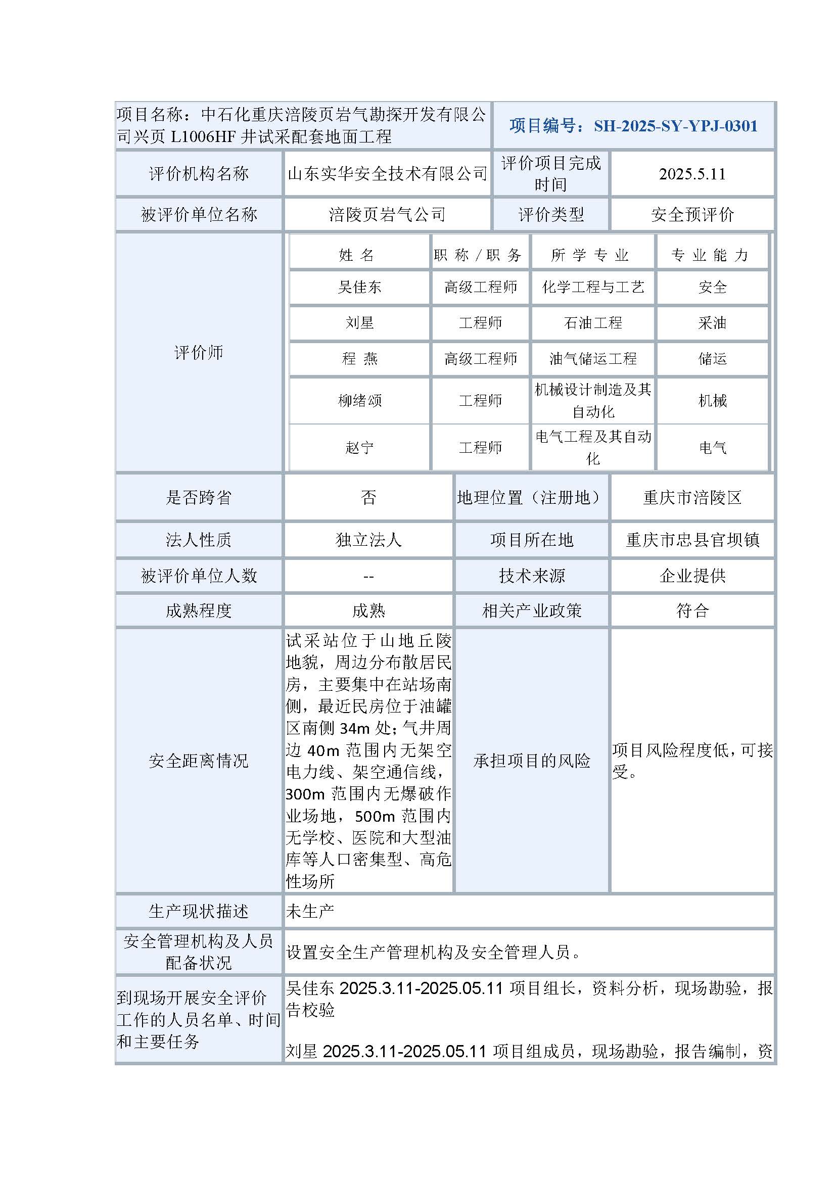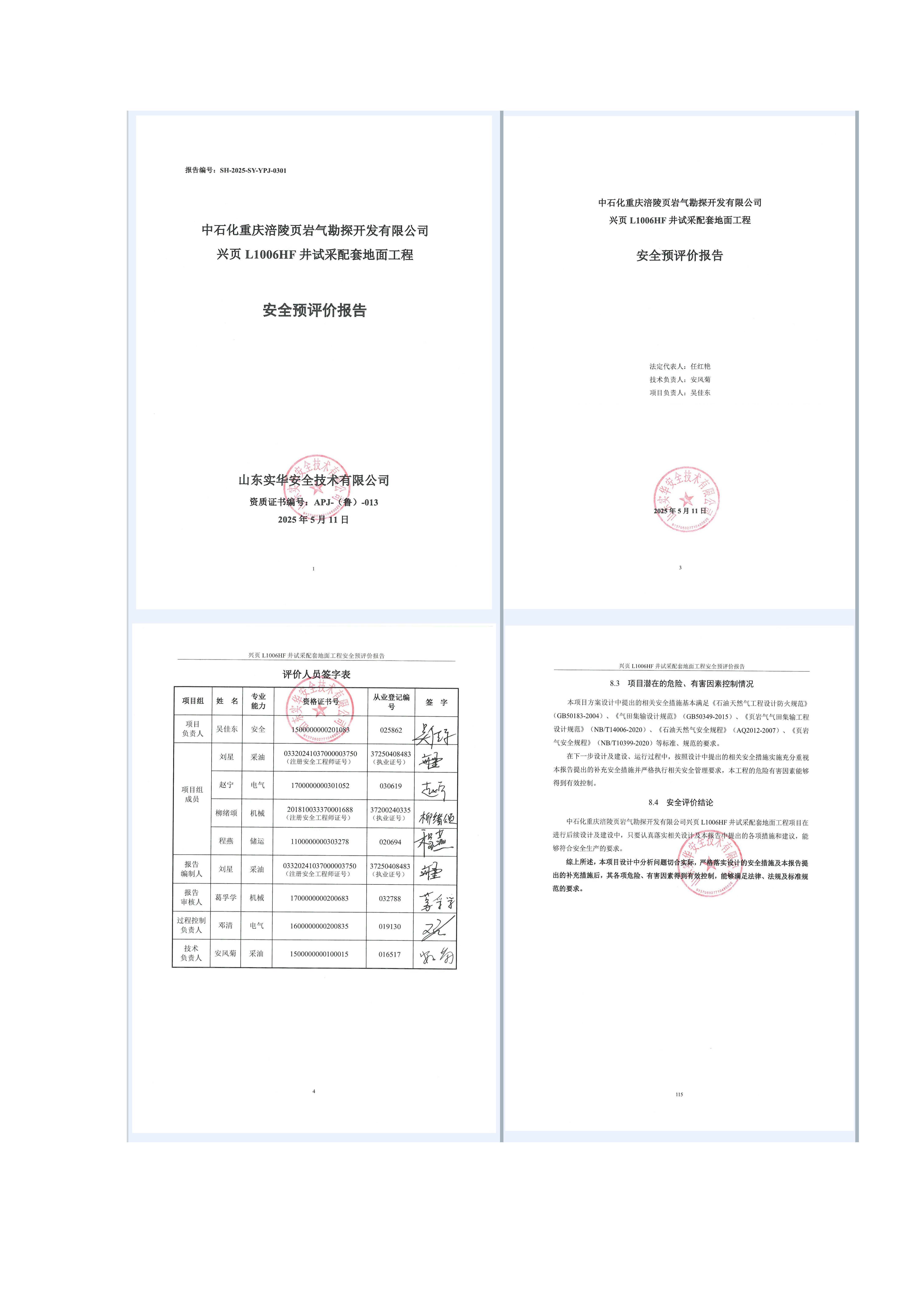 中石化重慶涪陵頁巖氣勘探開發(fā)有限公司興頁L1006HF井試采配套地面工程安全預(yù)評(píng)價(jià)