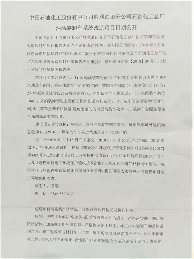中國石油化工股份有限公司勝利油田分公司石油化工總廠油品裝卸車系統(tǒng)改造項(xiàng)目日期公開