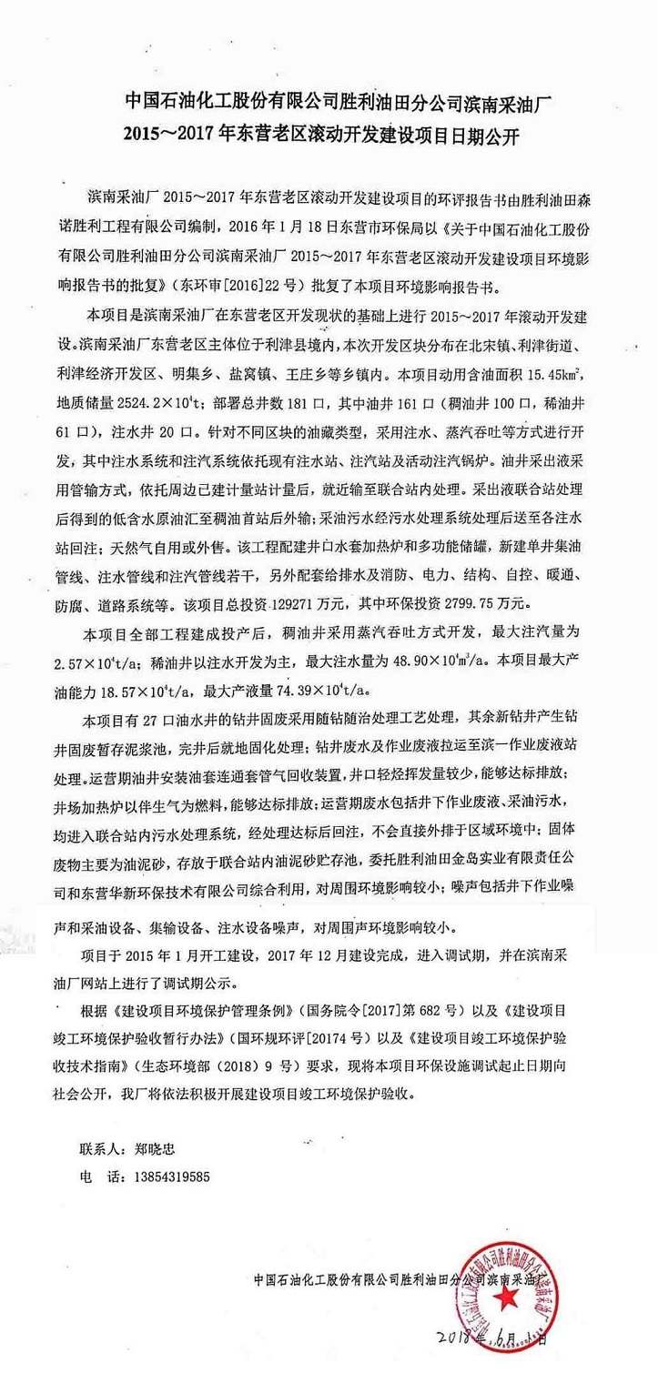 中國石油化工股份有限公司勝利油田分公司濱南采油廠2015~2017年東營老區(qū)滾動開發(fā)建設(shè)項目日期公開