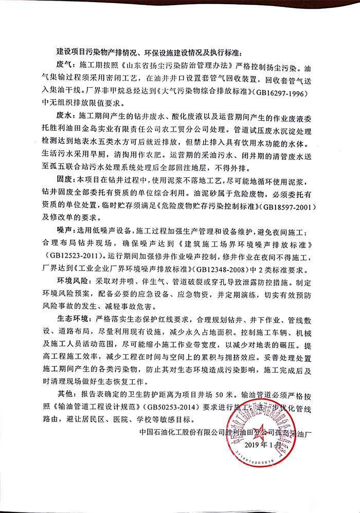 中國(guó)石油化工股份有限公司勝利油田分公司孤島采油廠孤島油田南區(qū)渤76-斜240井和南19-斜504井工程竣工公示